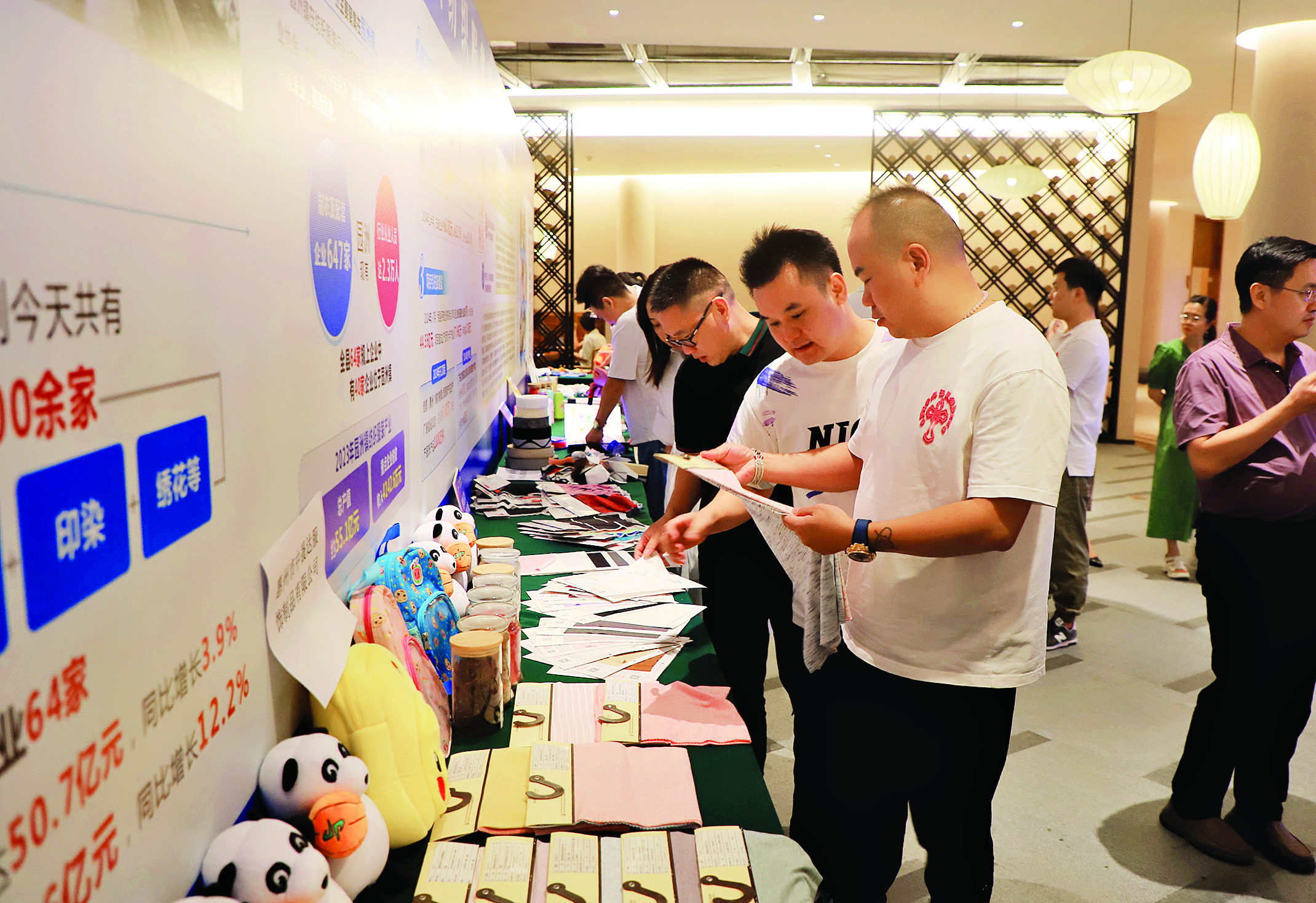 在招商政策的宣講后,現(xiàn)場(chǎng)還特別安排了招商交流對(duì)接答疑,讓企業(yè)更好地了解企業(yè)對(duì)接的合作流程,鏈接各類資源。值得關(guān)注的是,參會(huì)企業(yè)還自帶樣品,在現(xiàn)場(chǎng)進(jìn)行了選品交流。記者留意到,樣品展示設(shè)有男裝區(qū)、女裝區(qū)、童裝區(qū)以及帽子、鞋子等其他展區(qū)。廣東大紅馬紡織新材料有限公司位于園洲鎮(zhèn),是一家專注于高端色織領(lǐng)域的高新技術(shù)企業(yè)。該公司總經(jīng)理鄭曉航說,政府舉辦此次對(duì)接會(huì)為企業(yè)搭建了一個(gè)非常有商機(jī)的平臺(tái),為企業(yè)發(fā)展帶來很好的機(jī)遇。廣東壕鑫實(shí)業(yè)有限公司位于園洲鎮(zhèn),是專業(yè)從事高檔化纖彈性面料設(shè)計(jì)、研發(fā)、生產(chǎn)、銷售的現(xiàn)代化紡織印染企業(yè)。該公司總經(jīng)理申義清介紹,公司產(chǎn)品主要是外銷,近些年外銷受到了影響,“目前,在開拓內(nèi)銷市場(chǎng)的同時(shí),公司也致力做好海外市場(chǎng)。此次對(duì)接會(huì)給我們提供一個(gè)很好的對(duì)接平臺(tái),提供了很好的商機(jī)。”