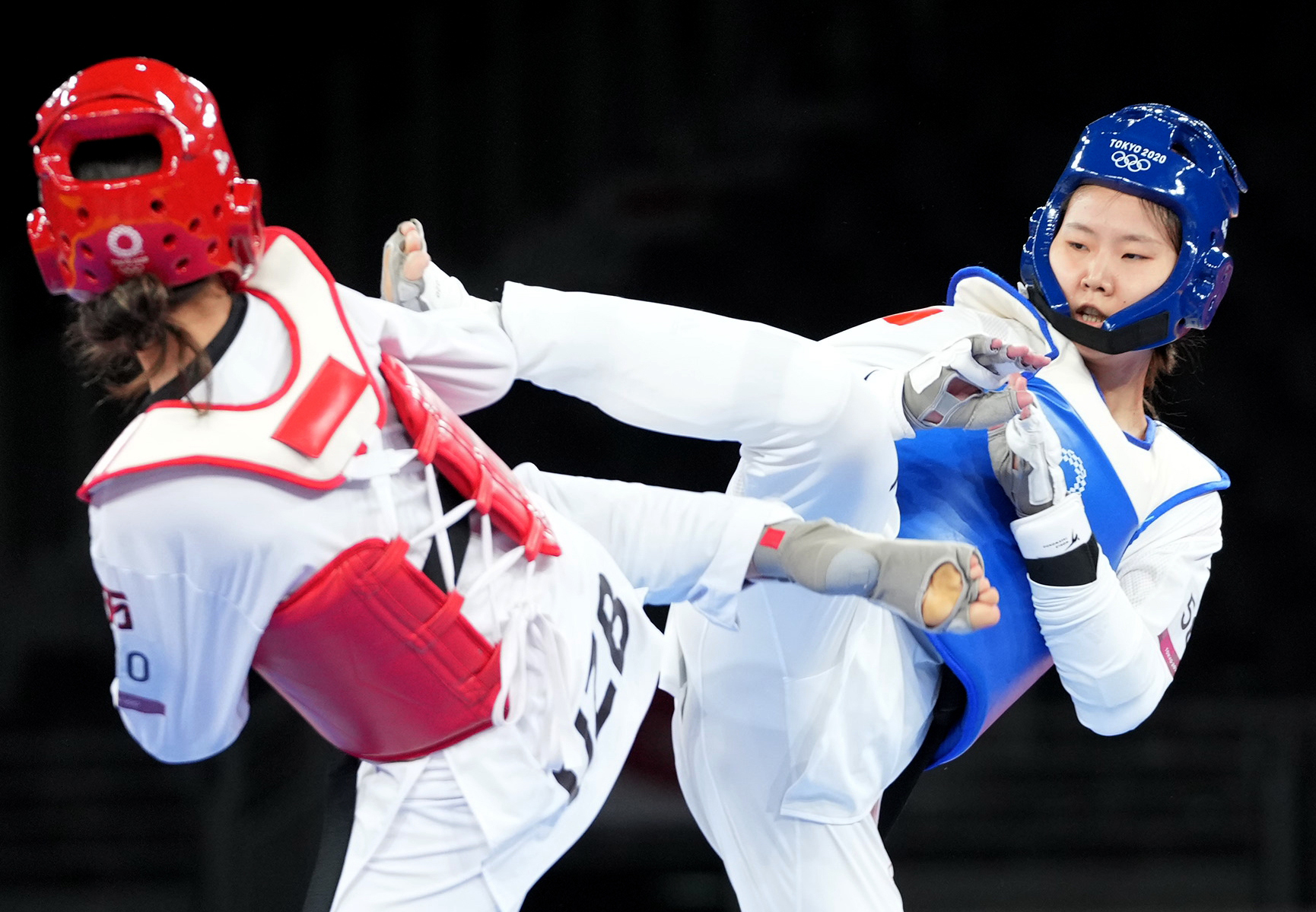 在跆拳道混合團(tuán)體表演賽中奪冠