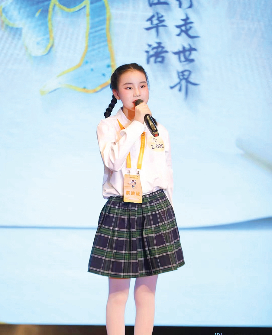 雷子軒在舞臺(tái)上展現(xiàn)朗誦魅力。