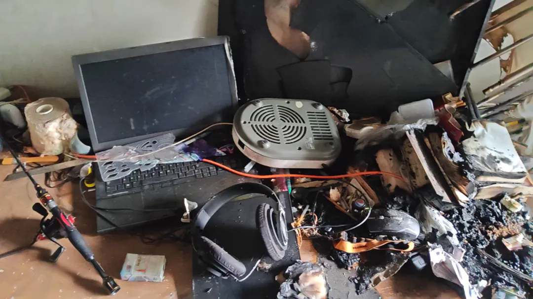 現(xiàn)場(chǎng)著火位置為客廳電腦桌面