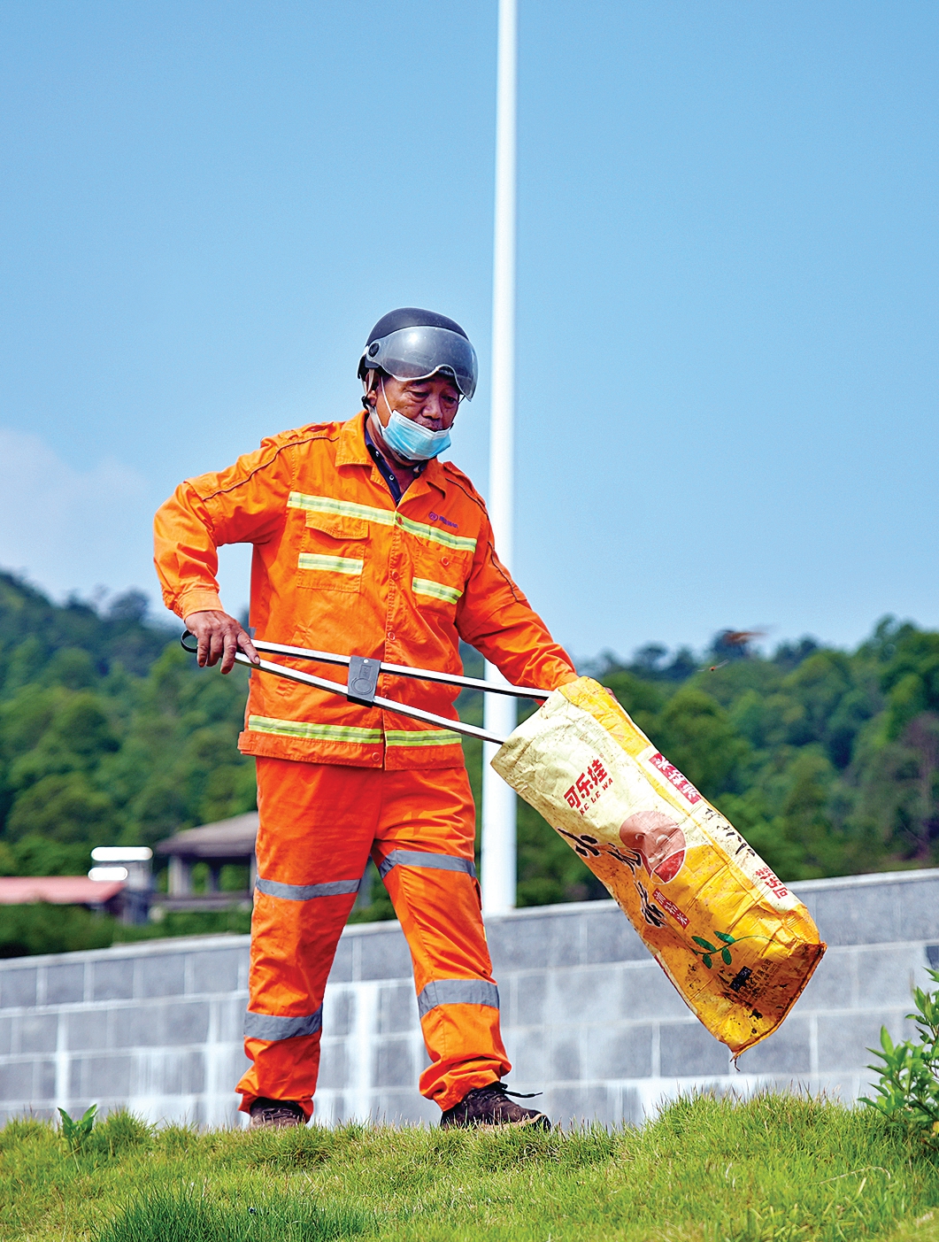 環(huán)衛(wèi)工人在清理蓮塘布水庫(kù)路邊的垃圾。惠州日?qǐng)?bào)記者羅劍業(yè) 攝