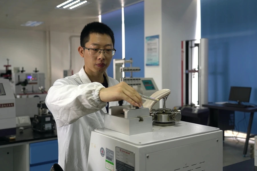 這是一家2022年才在惠東開業(yè)的鞋廠,引進了溫州一家鞋企的橡塑發(fā)泡材料用于生產(chǎn)坡跟女鞋等,相比傳統(tǒng)的厚鞋底,這種材料制作的鞋底輕便不累腳,可以把女鞋穿出運動鞋的腳感,廣受消費者青睞。“我們的客戶對品質(zhì)管控要求高,要出一份檢測報告給他,主要檢測耐磨性和環(huán)保相關(guān)指標。”該公司副總經(jīng)理黃惠標表示,在國家鞋檢中心投用前,公司要檢測得把產(chǎn)品送到廣州或東莞,檢測一次要花幾百到上千元,時間和資金成本不少,家門口有了國家鞋檢中心后,不僅方便還免費,幫助企業(yè)降本提質(zhì)。