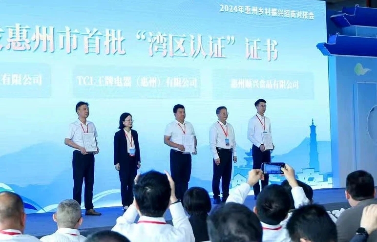 惠州市首批獲得“灣區(qū)認證”的3家企業(yè)獲頒證書。惠州東江圖片社供圖