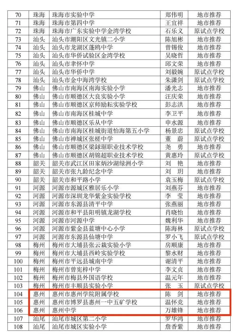 近日,省教育廳公布2024年廣東省中小學課堂教學數(shù)字化評價與質量提升項目立項學校名單惠州3所中小學入選惠州市惠州學院附屬學校惠州市博羅縣惠州一中五礦學校惠州中學