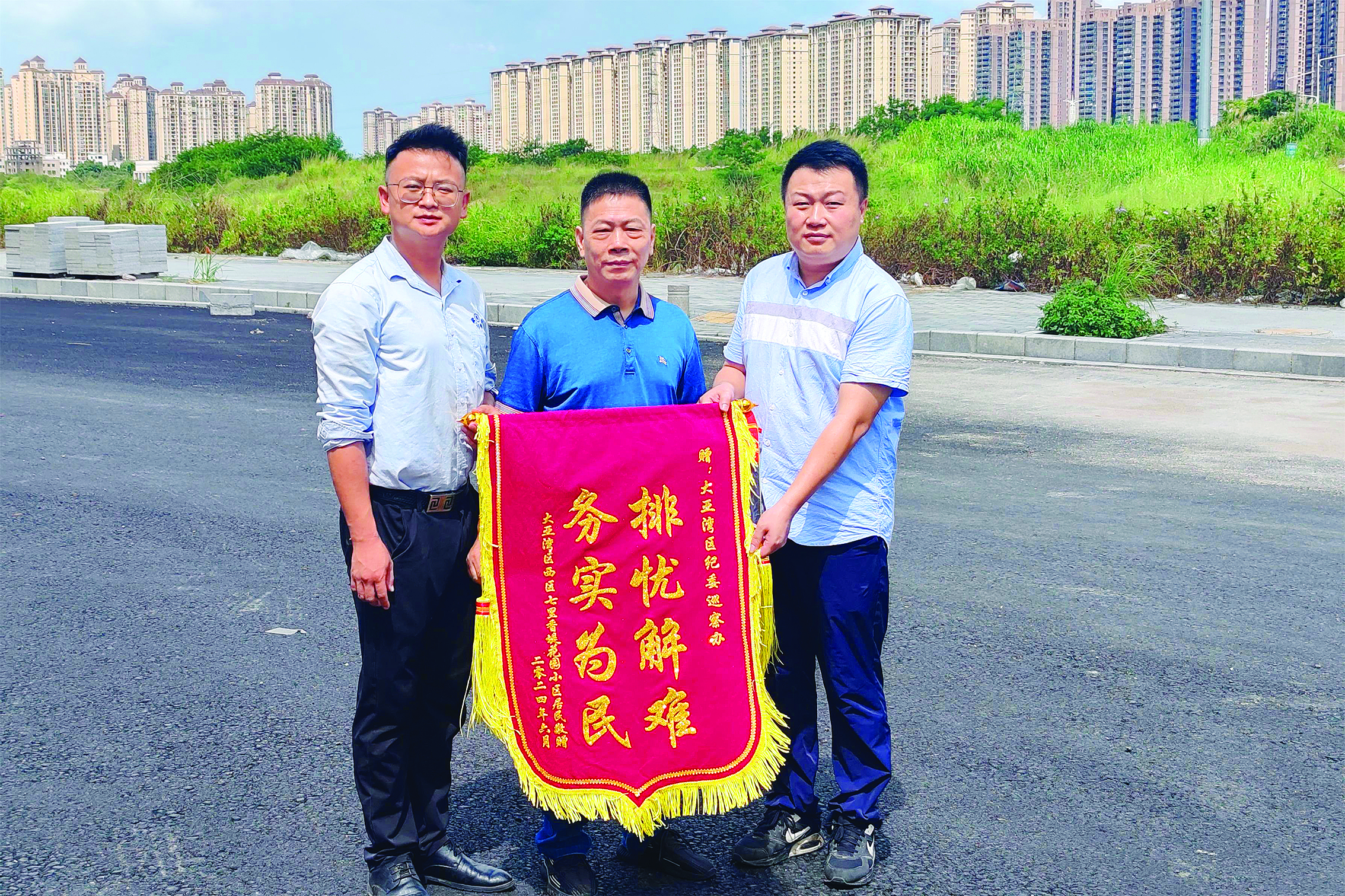 大亞灣開發(fā)區(qū)黨工委巡察機構(gòu)為某小區(qū)推動解決泥坑路問題,小區(qū)居民送來錦旗。