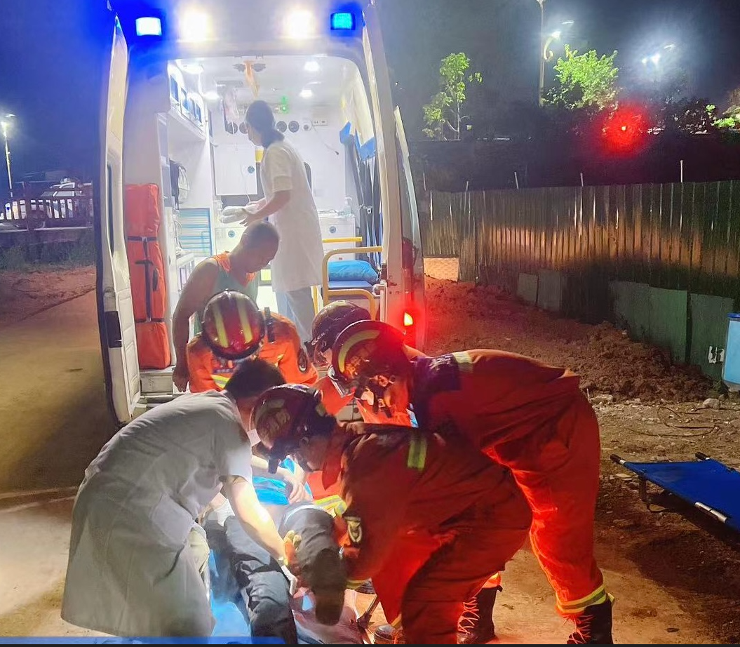 到場(chǎng)后,消防救援人員發(fā)現(xiàn)一輛白色轎車沖出人行道,懸掛在人行道與田地間,滿身酒氣男子躺在草叢上。消防員確認(rèn)無(wú)其他被困人員后,立即用擔(dān)架將男子固定后抬至路面移送醫(yī)護(hù)人員。