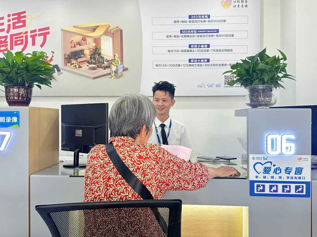 廣東移動惠州惠城分公司在營業(yè)廳設置“愛心專窗”,為老、弱、病、殘、孕等特殊群體開通“綠色通道”。