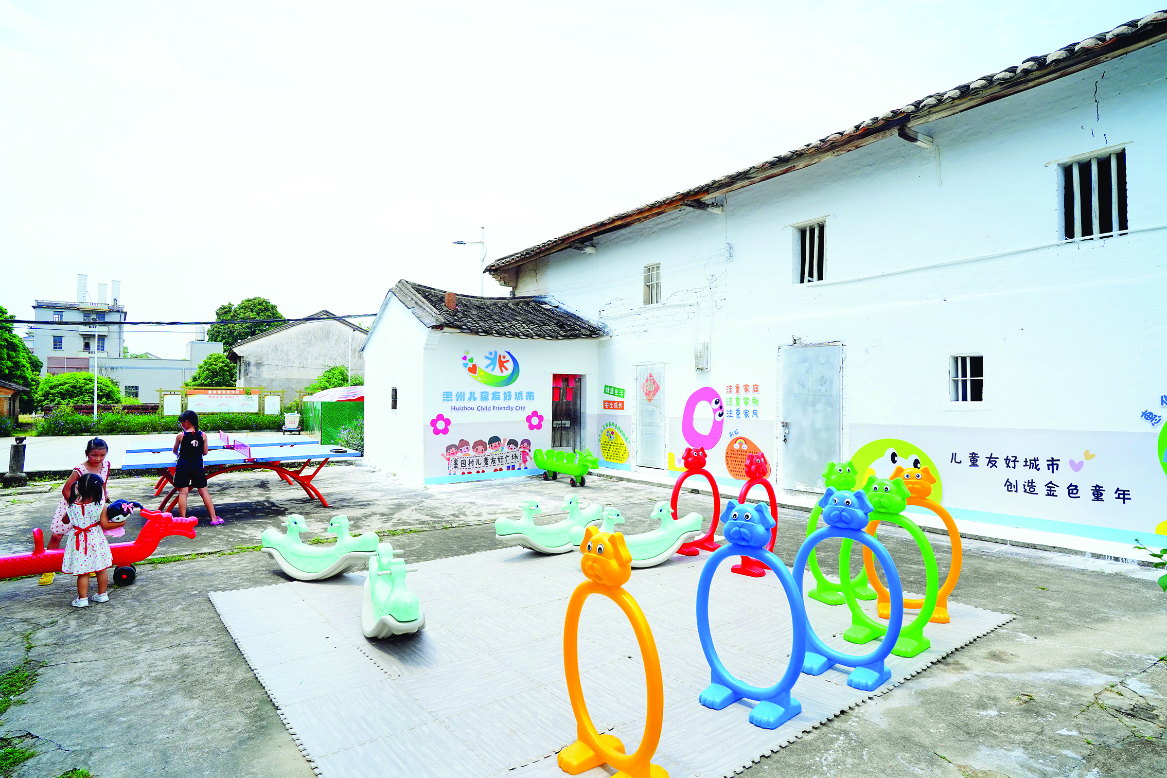 惠城區(qū)橫瀝鎮(zhèn)墨園村因地制宜設(shè)置兒童活動(dòng)廣場(chǎng)。