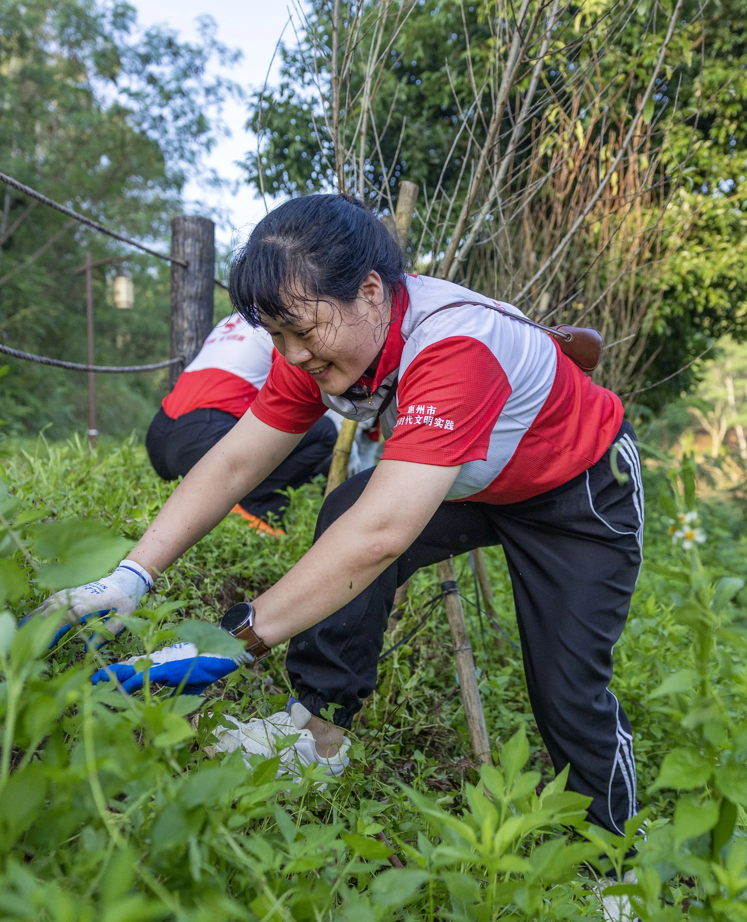 志愿者在桃花源景區(qū)拔草護綠。