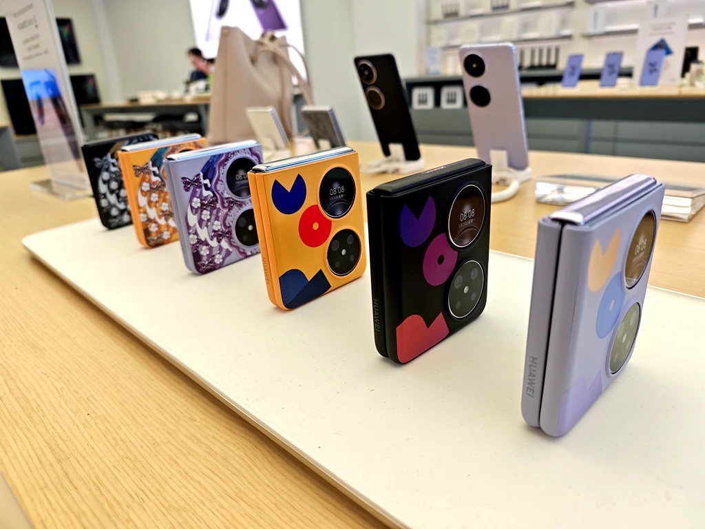 在各大品牌手機門店內(nèi),大折疊屏、小折疊屏手機都被擺在顯眼位置,手機外殼花色豐富多樣,頗具設計感和時尚感。