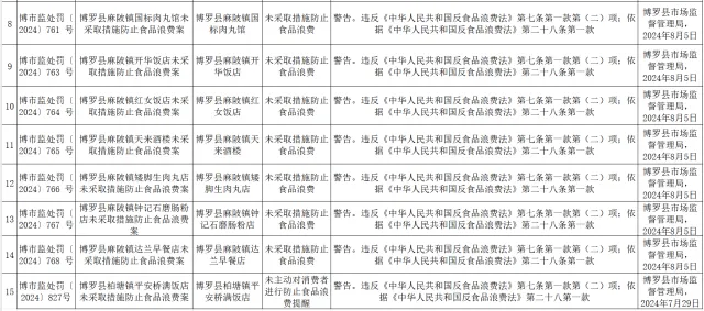 此外,博羅縣長(zhǎng)寧鎮(zhèn)友家早餐店、博羅縣麻陂鎮(zhèn)開華飯店、博羅縣麻陂鎮(zhèn)國(guó)標(biāo)肉丸館、博羅縣麻陂鎮(zhèn)天來(lái)酒樓等9家餐飲店則均因未采取措施防止食品浪費(fèi)的行為被立案查處。以開華飯店為例,執(zhí)法人員在檢查中發(fā)現(xiàn),企業(yè)未在經(jīng)營(yíng)場(chǎng)所醒目位置張貼或者擺放反食品浪費(fèi)標(biāo)識(shí),服務(wù)人員也未主動(dòng)對(duì)消費(fèi)者進(jìn)行防止食品浪費(fèi)提示提醒,引導(dǎo)消費(fèi)者按需適量點(diǎn)餐,從而被認(rèn)定為存在未采取措施防止食品浪費(fèi)的違法行為,均被給予警告處罰,責(zé)令企業(yè)進(jìn)行整改,倡導(dǎo)節(jié)約用餐,反對(duì)飲食浪費(fèi)。