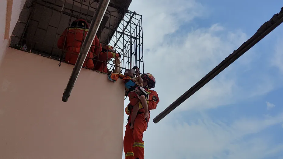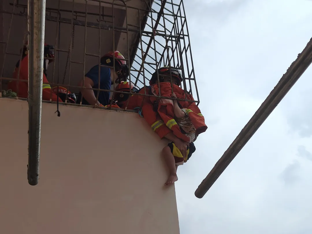 據(jù)了解,小孩因一個(gè)人在家中貪玩,爬到陽(yáng)臺(tái)防護(hù)窗上,腳滑導(dǎo)致卡在鐵欄上無(wú)法動(dòng)彈。