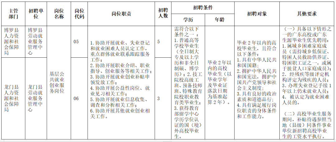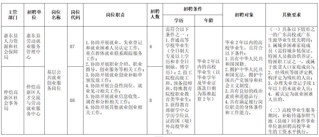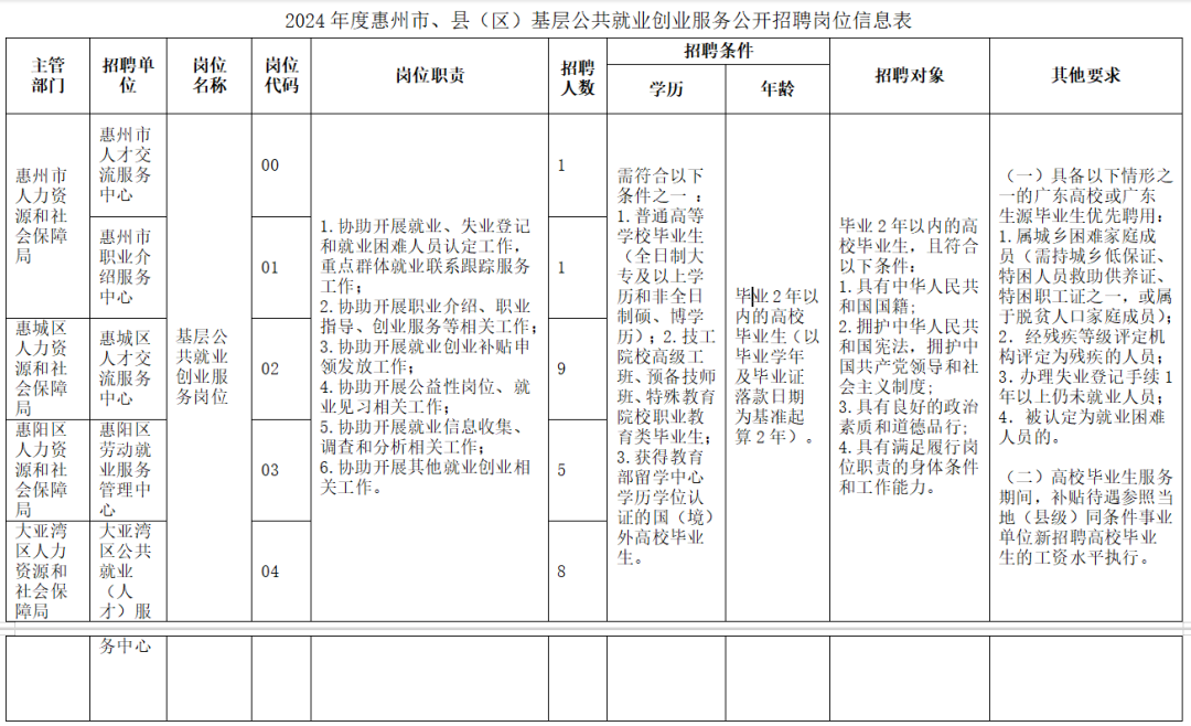 惠州市2024年度基層公共就業(yè)創(chuàng)業(yè)服務(wù)崗位吸納高校畢業(yè)生