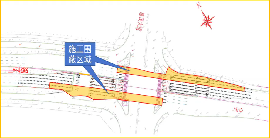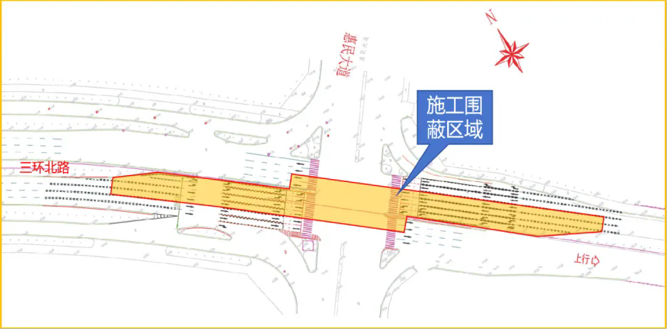 第二階段(約25天):三環(huán)北路/惠民大道交叉口東西向內(nèi)側(cè)8車道封閉,外側(cè)6車道恢復通行;南北進口禁止車輛直行和左轉(zhuǎn),人行橫道禁止行人通行。