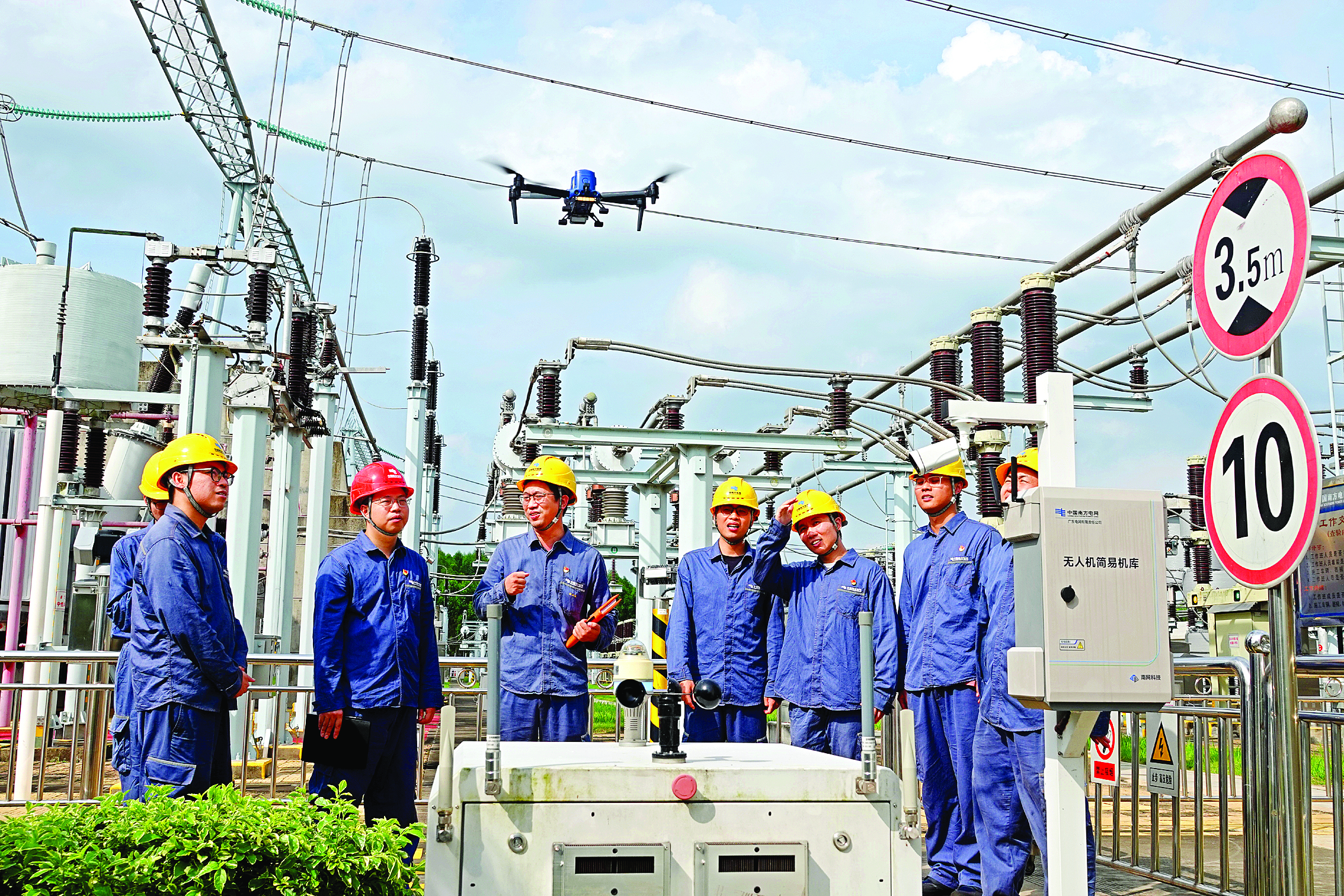 惠州供電局工作人員利用無人機巡檢變電站設(shè)備。 林夏捷 攝