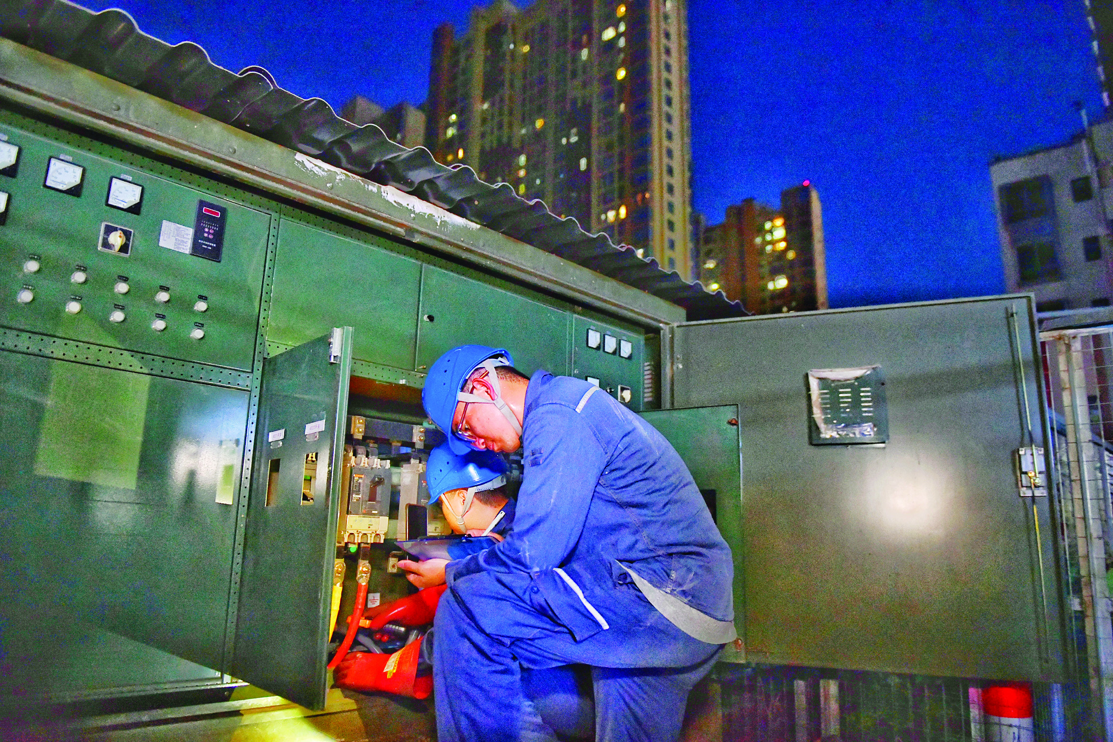 惠州供電局工作人員在高峰用電時段開展夜巡測負荷工作。 陳凌 攝