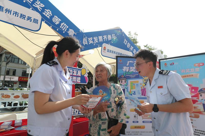 國(guó)慶長(zhǎng)假是消費(fèi)旺季,國(guó)家稅務(wù)總局惠州市稅務(wù)局開展“有獎(jiǎng)發(fā)票”宣傳。“市民和商家參與就有機(jī)會(huì)領(lǐng)紅包、抽大獎(jiǎng)。”工作人員介紹,今年12月31日前,只要消費(fèi)者在餐飲、住宿、物業(yè)管理這三大行業(yè)中收到向個(gè)人開具的、單張發(fā)票價(jià)稅合計(jì)達(dá)到或超過50元的普通發(fā)票,均可參與即時(shí)開獎(jiǎng)活動(dòng),中獎(jiǎng)?lì)~度最高200元。