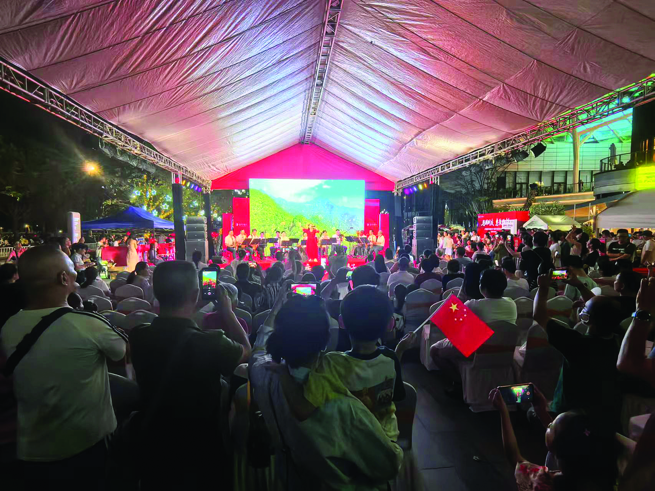 活動期間,兩個會場還不時舉辦文藝表演。10月1日晚,在惠州中海廣場環(huán)宇天地舉辦的文藝晚會上,來自惠州日報(bào)社東籬俱樂部以及惠州市八一琴行的演出嘉賓送上了一個又一個精彩節(jié)目。10月2日晚,還有兩支樂隊(duì)來到活動現(xiàn)場,用歌聲陪市民過節(jié),他們一共帶來30多首歌曲。