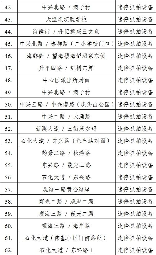 現(xiàn)就視頻監(jiān)控點(diǎn)設(shè)備設(shè)置的地點(diǎn)進(jìn)行通告,通告時間7個工作日,通告期間我區(qū)交通管理部門將對相關(guān)車輛駕駛?cè)说慕煌ㄟ`法行為進(jìn)行警告教育,通告期結(jié)束后將按照相關(guān)法律法規(guī)規(guī)定進(jìn)行處罰。請廣大車輛駕駛?cè)俗杂X遵守交通法律法規(guī)。具體如下: