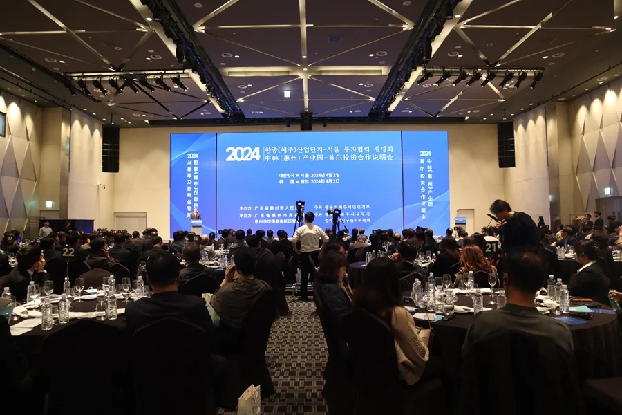 我市在韓國(guó)舉辦中韓(惠州)產(chǎn)業(yè)園--首爾投資合作說(shuō)明會(huì)。圖片由惠州市商務(wù)局提供