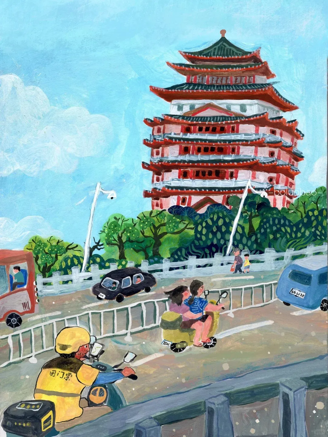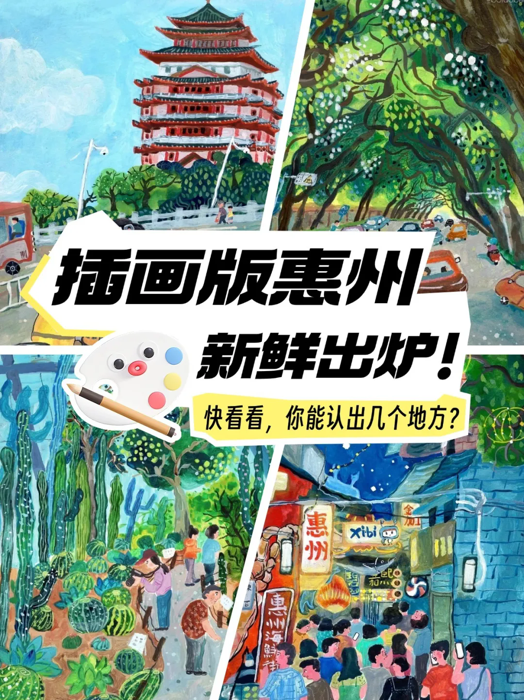 小紅書達人@菠蘿包電臺 就用色彩和線條,記錄下了她眼中的多彩惠州。