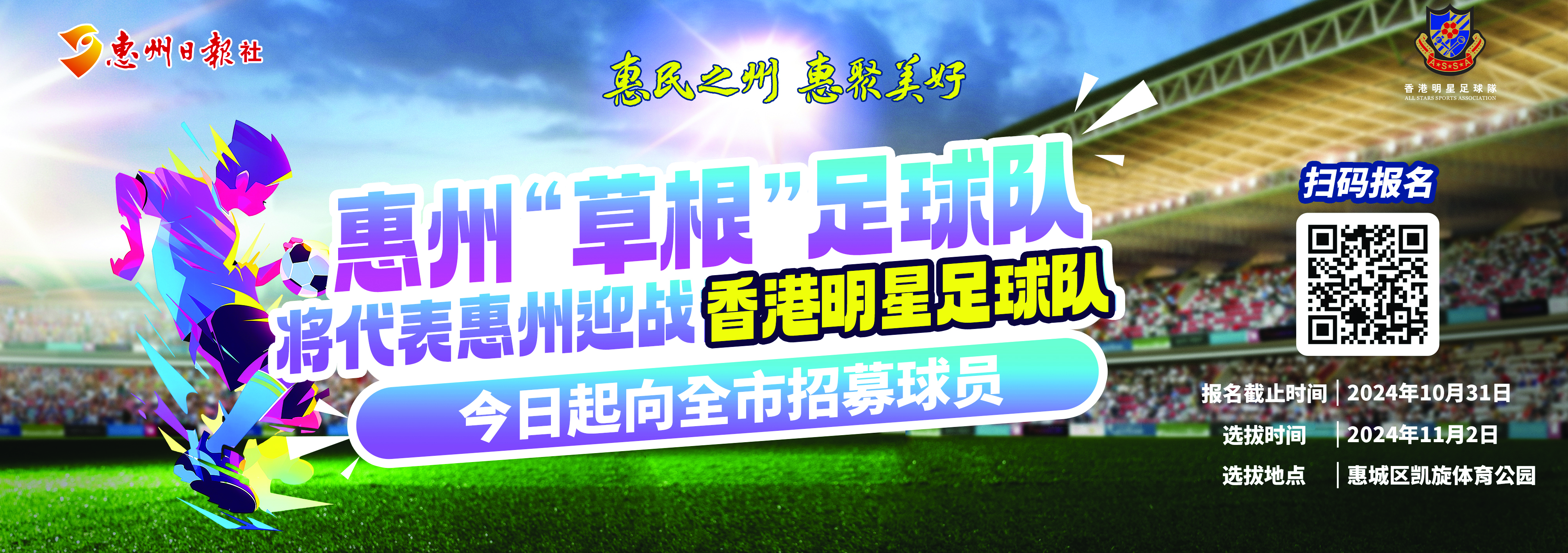 惠州日報訊 (記者龔妍)你熱愛足球嗎?想在綠茵場上綻放光彩嗎?想代表惠州迎戰(zhàn)香港明星足球隊嗎?這些夢想,在香港明星足球隊惠州公益邀請賽都能實現(xiàn)。10月20日,記者從“惠民之州 惠聚美好”香港明星足球隊惠州公益邀請賽組委會獲悉,本次大賽意在打造“普通人圓夢”主題,向惠州廣大足球愛好者廣發(fā)“英雄帖”,選拔“草根”球員組建惠州“草根”足球隊,和香港明星足球隊進(jìn)行對決。不管你是保安、外賣小哥、廚師,還是建筑工人,不限年齡、職業(yè)、性別,只要你是熱愛足球、擁有一定的足球技能和潛力的非職業(yè)足球運動員,都可以報名參加本次比賽。賽事報名截止時間為10月31日,感興趣的可關(guān)注“惠州日報”微信公眾號或掃描二維碼(見下方廣告)報名。