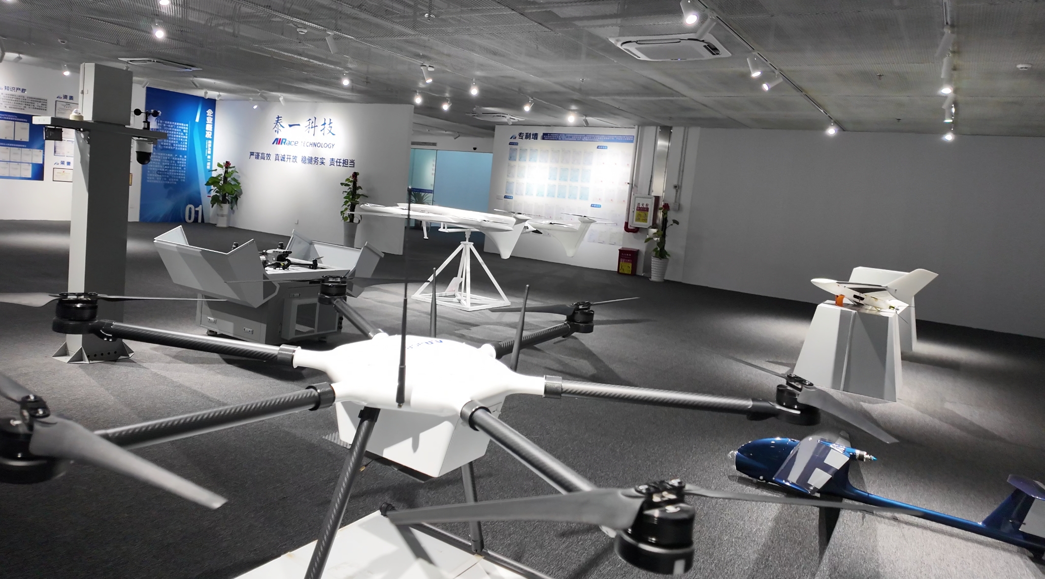 廣東泰一高新技術(shù)發(fā)展有限公司展廳內(nèi)的行業(yè)無(wú)人機(jī)。惠州東江圖片社供圖