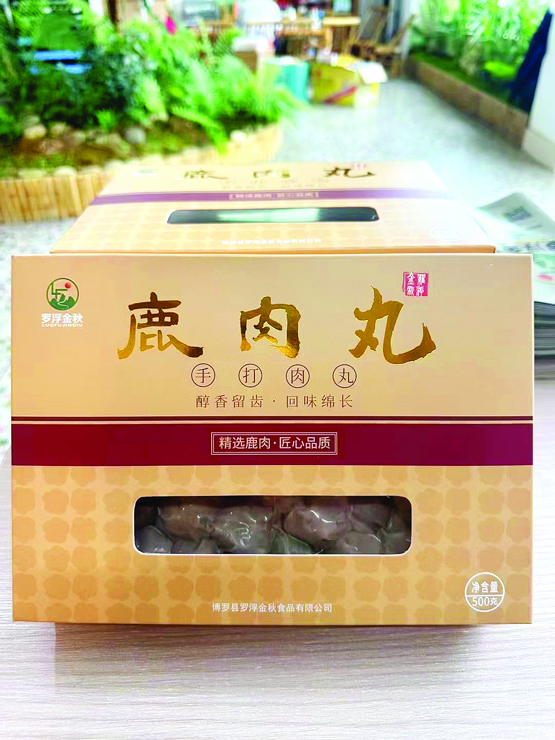 線上直播推介的軍創(chuàng)產(chǎn)品鹿肉丸。