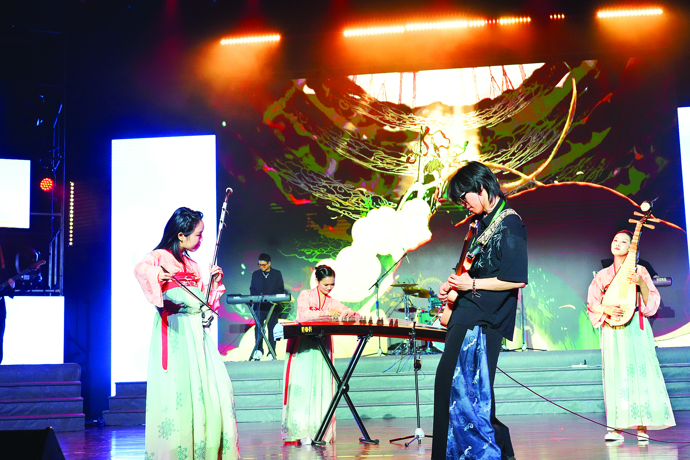 傳統(tǒng)樂器與吉他同臺演奏。惠州日報(bào)記者許文昌 攝