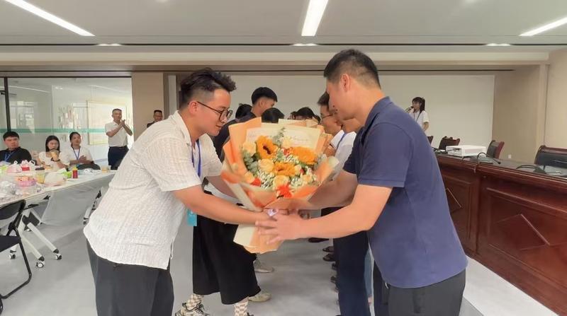 在學(xué)校慶祝第40個(gè)教師節(jié)座談會(huì)上,新教師向老教師獻(xiàn)花,薪火相傳攜手共進(jìn)。