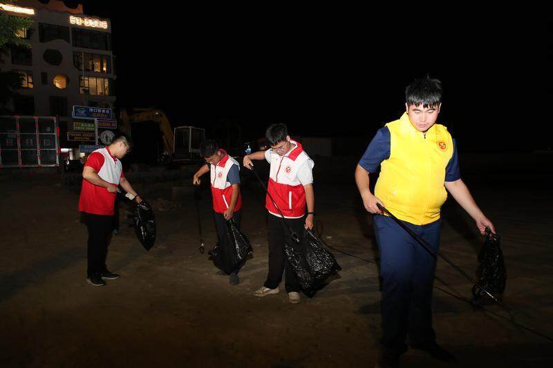 為進(jìn)一步引導(dǎo)當(dāng)?shù)厝罕姾蛷V大游客自覺愛護(hù)濱海旅游環(huán)境,今年8月5日,港口英雄民兵連新時(shí)代文明實(shí)踐基地“撿跑”夜模式正式啟動(dòng)。每到傍晚,港口英雄民兵連的志愿者們,一邊在沙灘將塑料袋、飲料瓶、紙屑等放入垃圾袋,一邊向周邊商鋪、居民宣傳環(huán)保理念,帶動(dòng)廣大群眾加入環(huán)保隊(duì)伍。