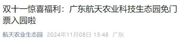 廣東航天農業(yè)科技生態(tài)園:全日+全員免費入園