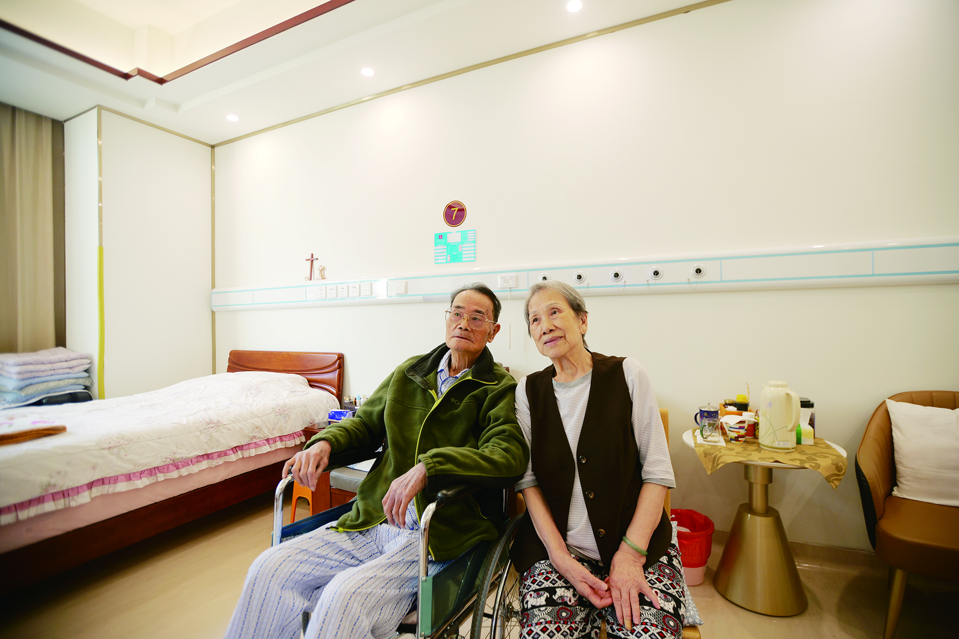 當(dāng)干女兒帶著他們夫婦來到這里以后,夫妻倆當(dāng)即便決定入住。“當(dāng)時我盆骨摔傷,華康醫(yī)院又是專業(yè)治療骨傷的醫(yī)院,就覺得這里特別合適。”鄧阿婆告訴記者,住下一段時間后,他們倆感覺在這里生活特別舒心,已經(jīng)不愿離去,計劃在此安度晚年。一旁的徐阿公也向記者比著“OK”的手勢,表達(dá)對這里生活的滿意。