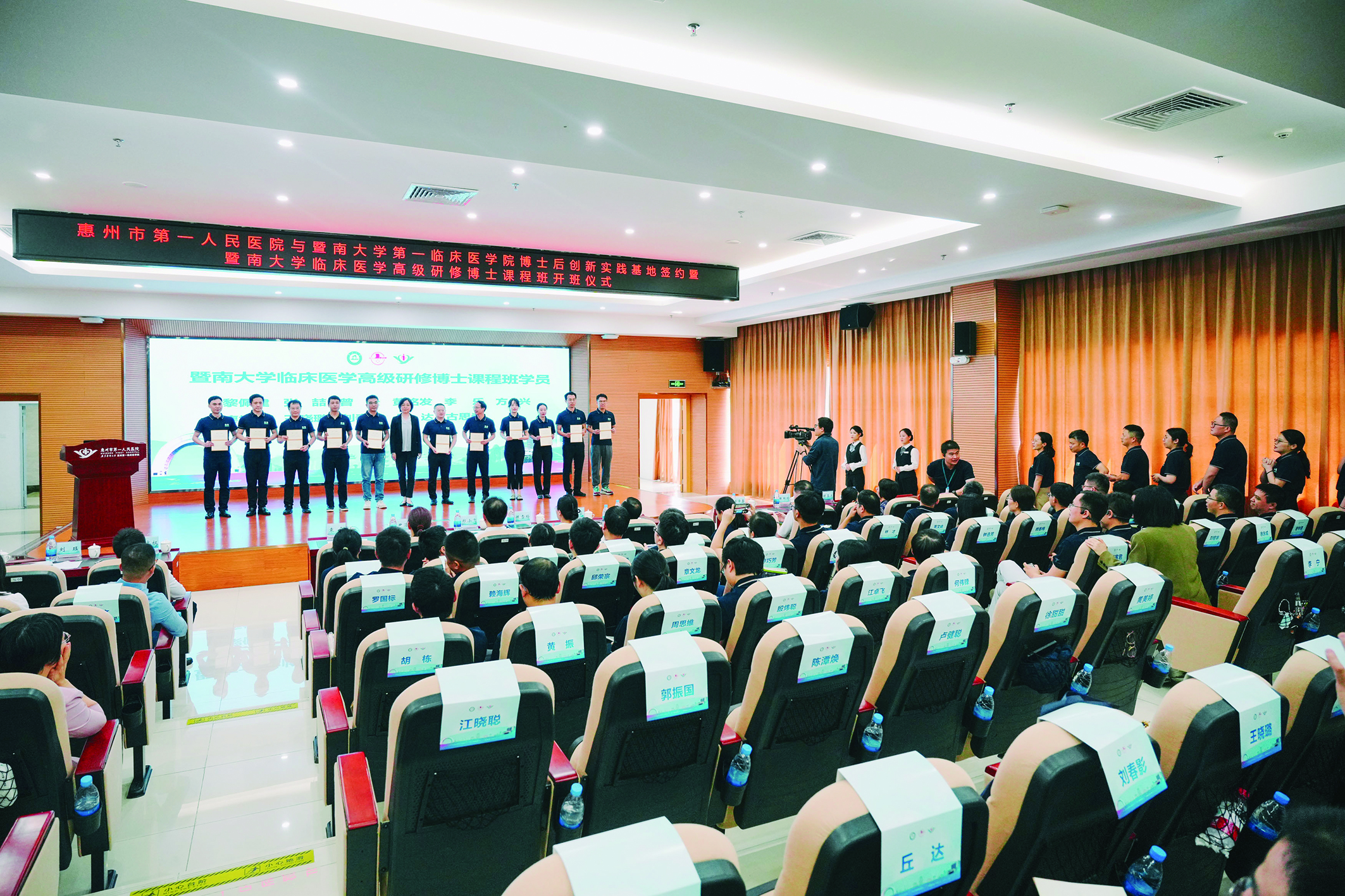 當(dāng)天的儀式熱烈而莊重,惠州市委組織部、市衛(wèi)生健康局、暨南大學(xué)第一臨床醫(yī)學(xué)院、市第一人民醫(yī)院、市第三人民醫(yī)院相關(guān)負(fù)責(zé)人,以及暨南大學(xué)臨床醫(yī)學(xué)高級研修博士課程班學(xué)員出席了現(xiàn)場活動。