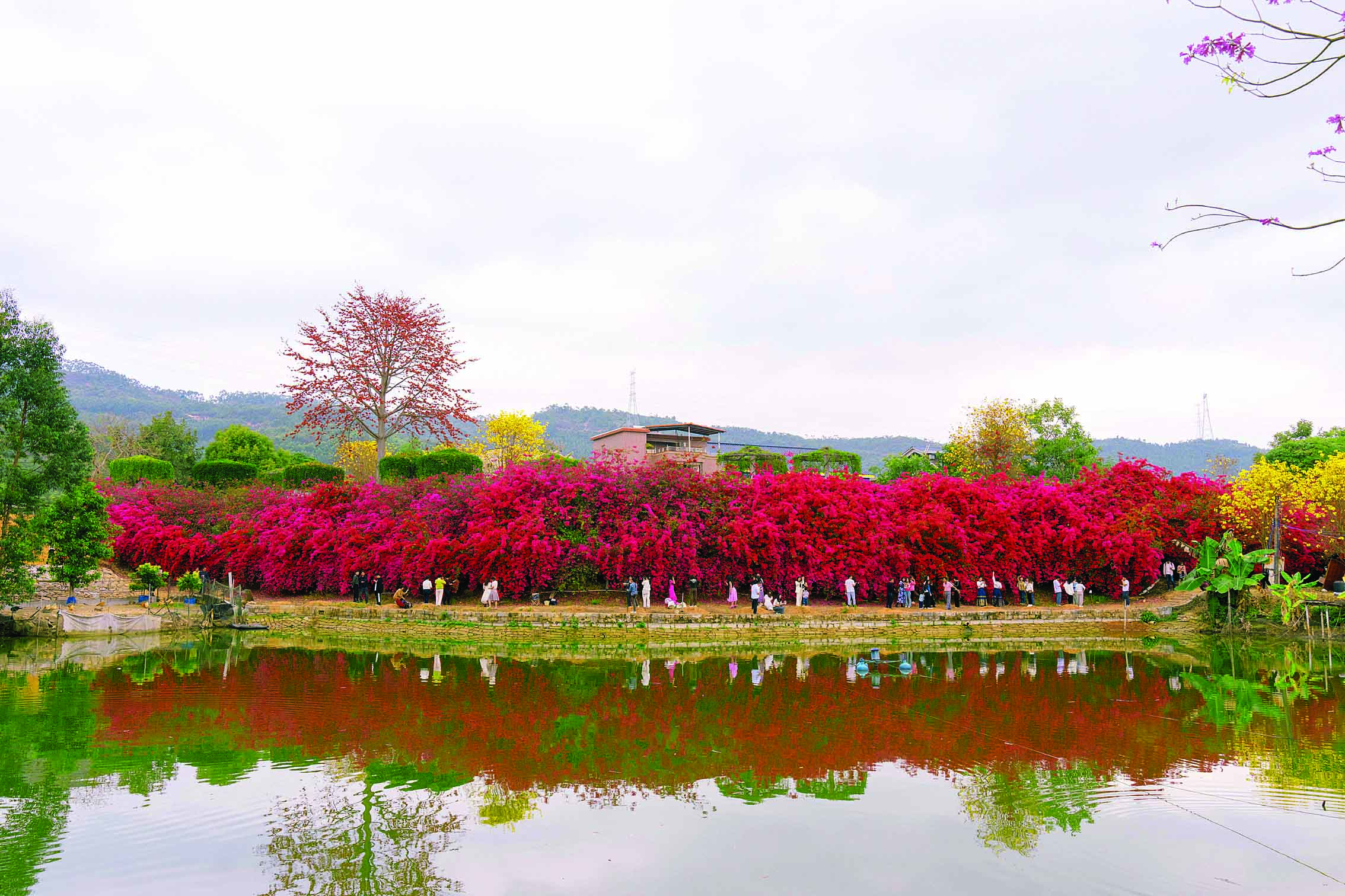 市民在仲愷潼湖鎮(zhèn)黃屋村“美麗庭院”示范戶“三角梅瀑布”下打卡。
