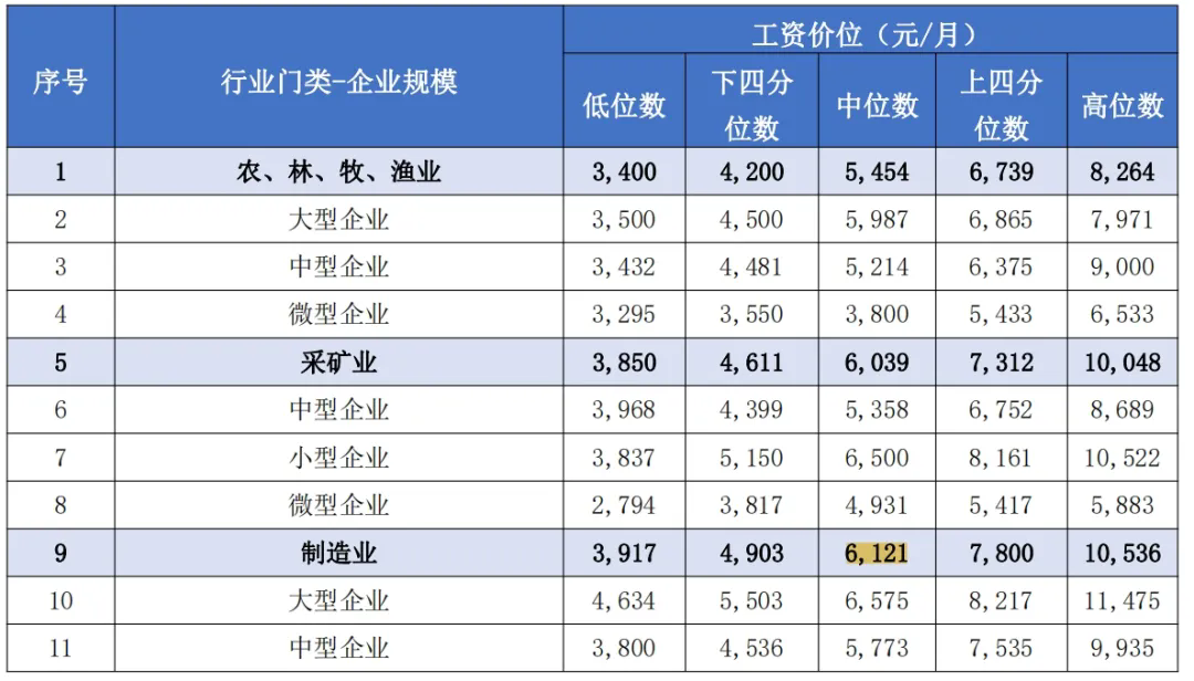 以制造業(yè)為例,大型企業(yè)的工資中位數(shù)為6575元/月,而微型企業(yè)為3980元/月。這一差異不僅反映了大型企業(yè)在薪酬上的競(jìng)爭(zhēng)力,也暗示了大型企業(yè)可能提供更好的職業(yè)發(fā)展機(jī)會(huì)和更穩(wěn)定的工作環(huán)境。對(duì)于大部分求職者而言,選擇大型企業(yè)可能意味著更高的薪酬和更廣闊的職業(yè)發(fā)展空間。