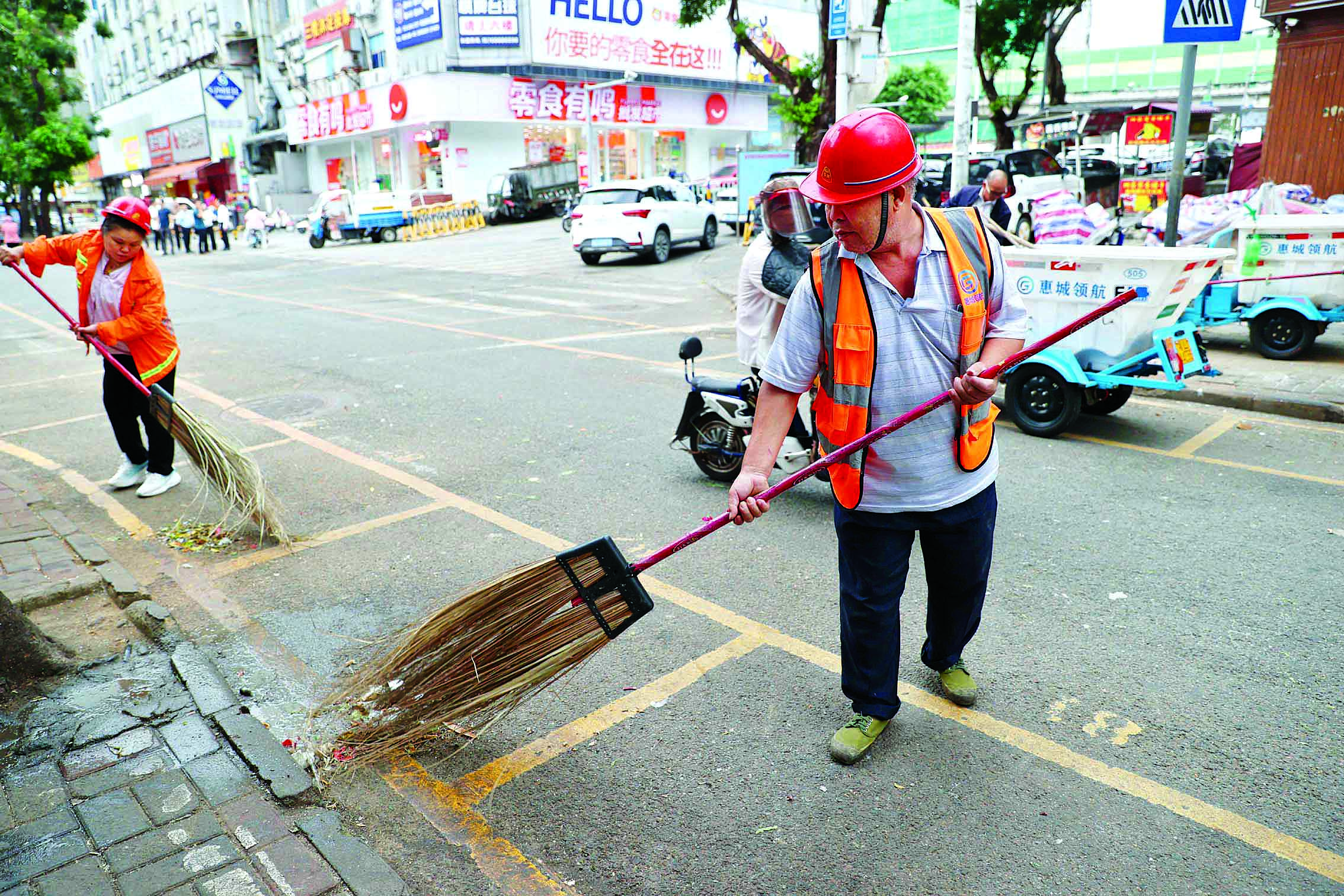 環(huán)衛(wèi)工人在老城區(qū)打掃衛(wèi)生。惠州日報記者楊建業(yè) 攝