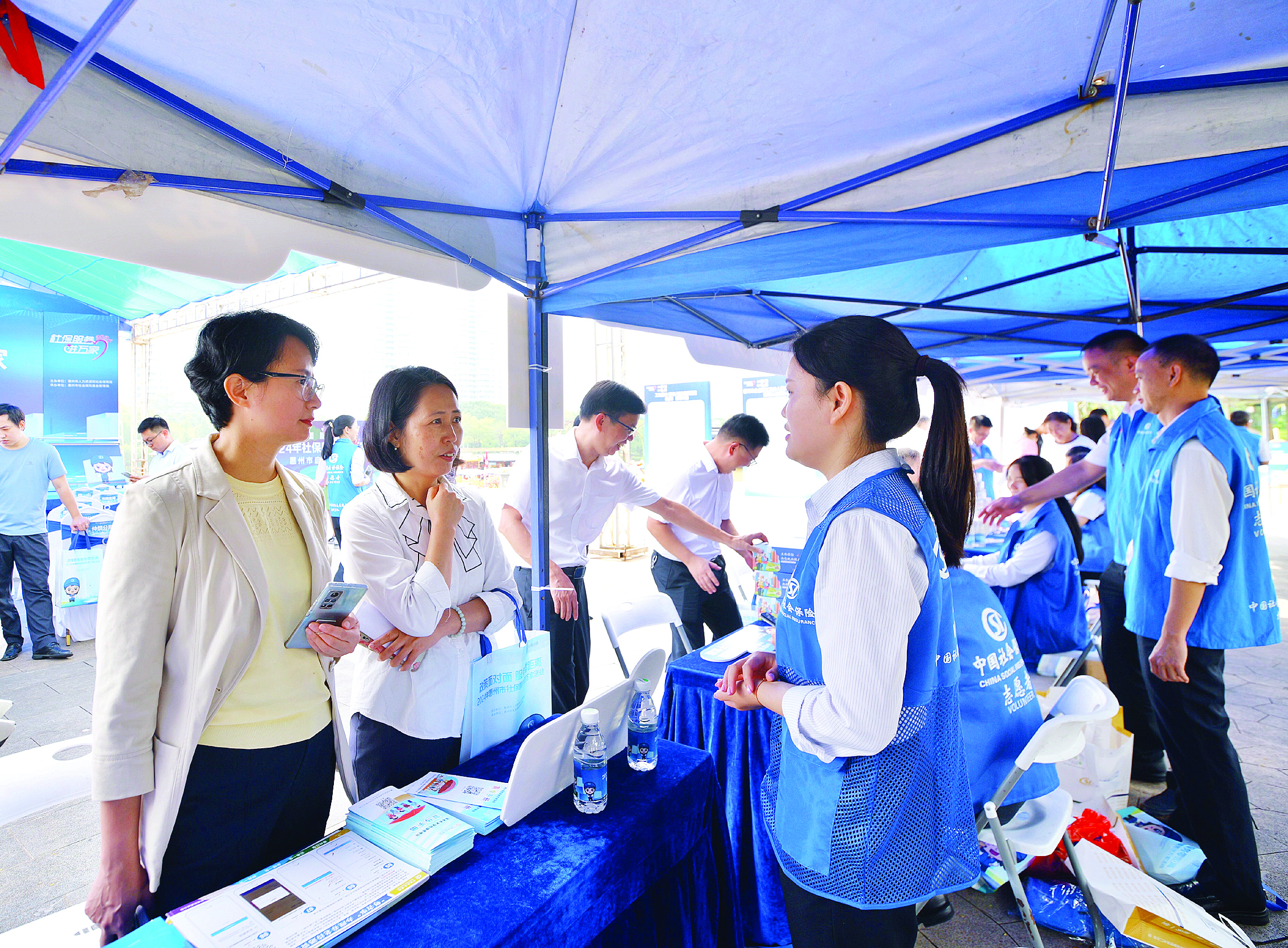 日前舉行的“社保服務(wù)進萬家”活動上,社保部門工作人員向市民現(xiàn)場解答社保參保繳費、工傷保險等熱點問題。 惠州日報記者黃鑫威 攝