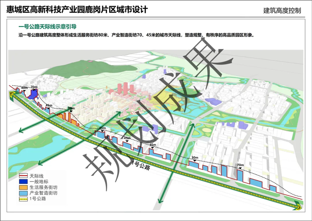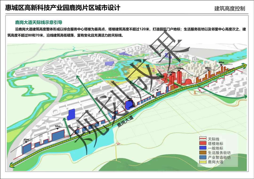 根據(jù)規(guī)劃,鹿崗片區(qū)的天際線有限制高度,建筑高度不超過120米。