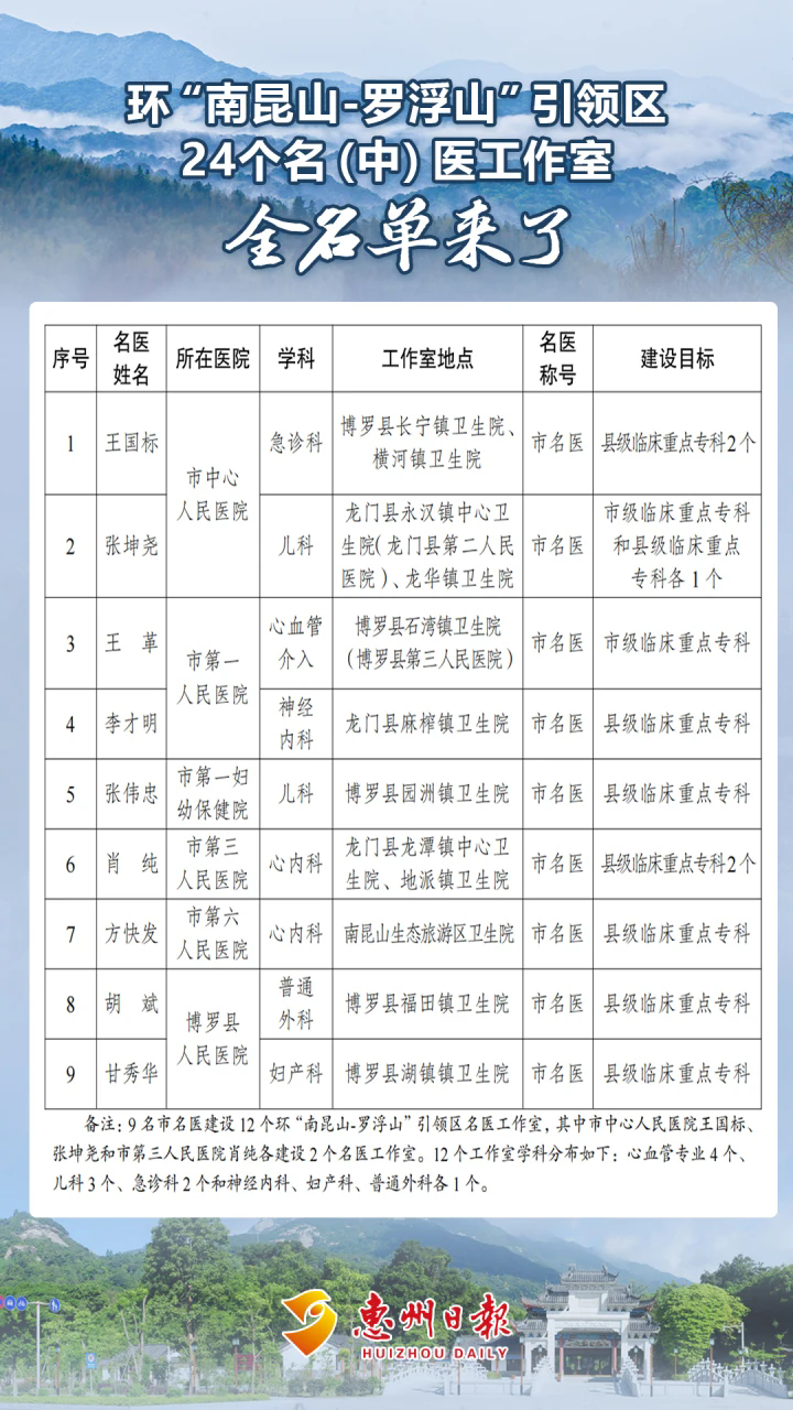 ■環(huán)“南昆山-羅浮山”引領區(qū)此次建設名(中)醫(yī)工作室共24個,其中12個名醫(yī)工作室、12個名中醫(yī)工作室。