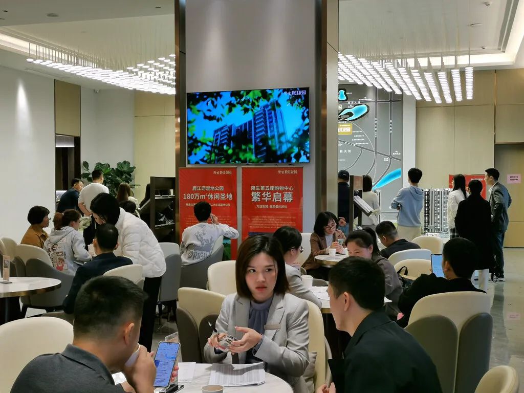 市民在市區(qū)隆生鹿江花園銷售中心看房。