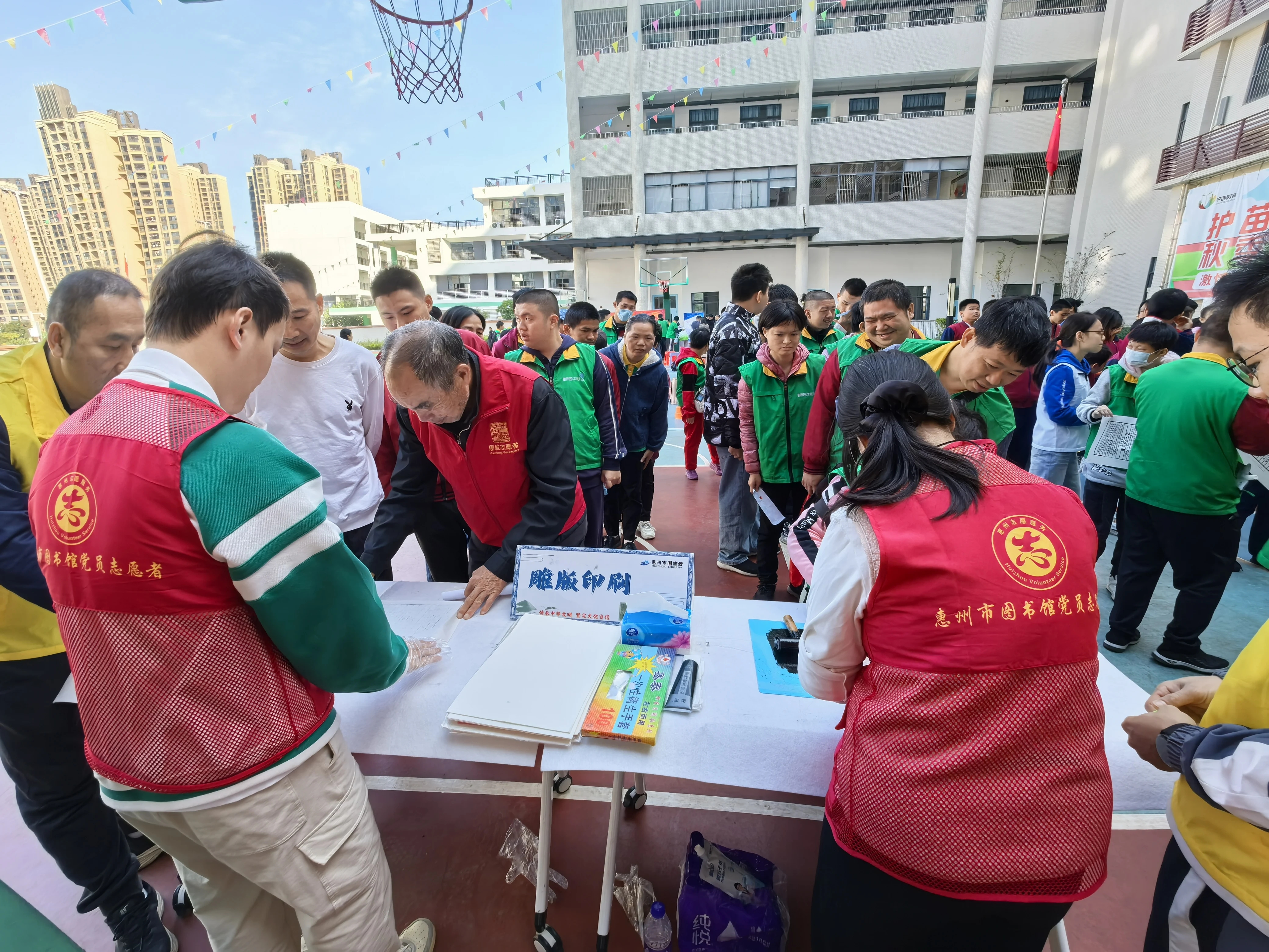 冬日暖陽(yáng)下,活動(dòng)現(xiàn)場(chǎng)人頭攢動(dòng),惠州市圖書(shū)館精心準(zhǔn)備了以中華優(yōu)秀傳統(tǒng)文化技藝體驗(yàn)為載體設(shè)計(jì)的系列活動(dòng),讓殘障人士在知識(shí)講解中親身體驗(yàn)中華優(yōu)秀傳統(tǒng)文化,堅(jiān)定文化認(rèn)同感和文化自信。雕版印刷攤位前,在館員的細(xì)心講解和指導(dǎo)下,康園中心會(huì)員和一眾護(hù)苗培智學(xué)校學(xué)生興致勃勃地體驗(yàn)雕版印刷,從蘸墨到敷墨、從覆紙?jiān)俚剿⒂。谶^(guò)程中感受墨香裊裊、書(shū)香縈繞;拓印攤位前,學(xué)生們有序排隊(duì),拓印瓦當(dāng),體驗(yàn)古代傳拓技藝的獨(dú)特魅力;古籍裝幀攤位前,志愿者親手示范,一針一線地講解穿針引線的步驟;數(shù)字閱讀資源推廣攤位前,館員介紹了惠州市圖書(shū)館無(wú)障礙數(shù)字資源的便捷使用方法,引導(dǎo)殘障人士通過(guò)電腦或者手機(jī)端隨時(shí)獲取聽(tīng)書(shū)和無(wú)障礙影音數(shù)據(jù)庫(kù)等免費(fèi)資源。