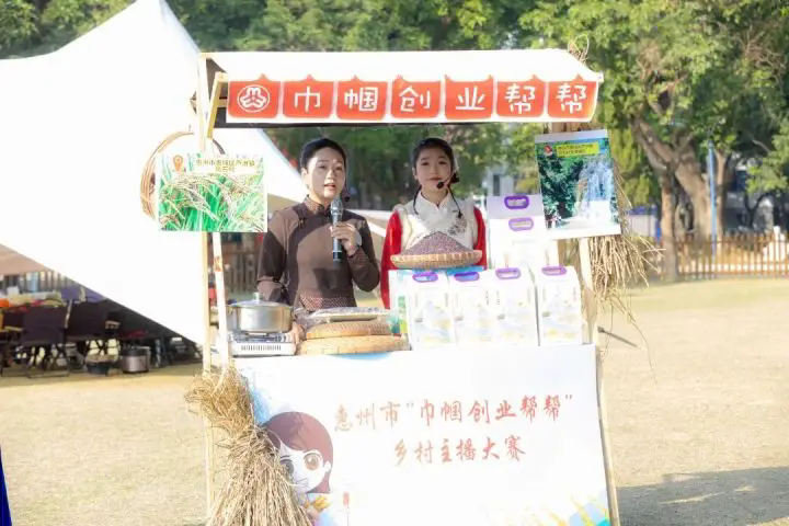 惠城區(qū)蘆洲鎮(zhèn)蘆村村婦聯(lián)主席舒贏、女大學生羅婷婷向大家介紹了蘆洲鎮(zhèn)的龍?zhí)镀俨技昂热伴L大”的玄脂黑米,舒贏帶動大家通過種植玄脂黑米增收致富。
