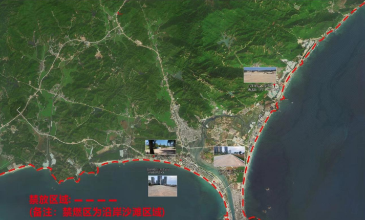惠東雙月灣沙灘禁放區(qū)域、可燃放時間為: