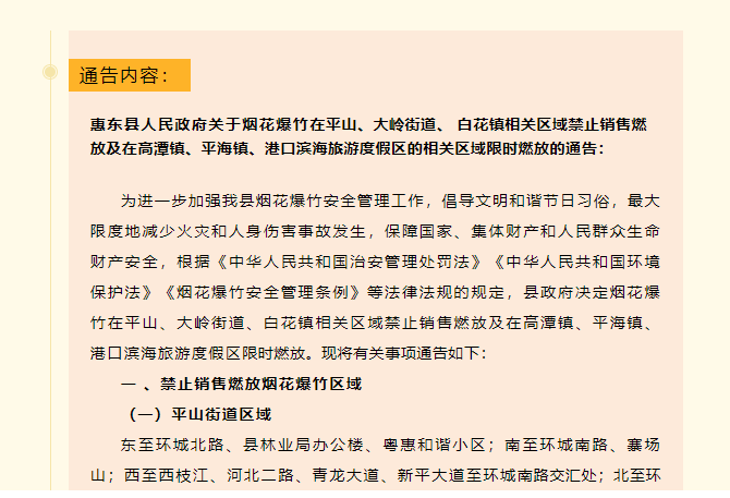 惠東哪些地方是禁止燃放煙花爆竹?