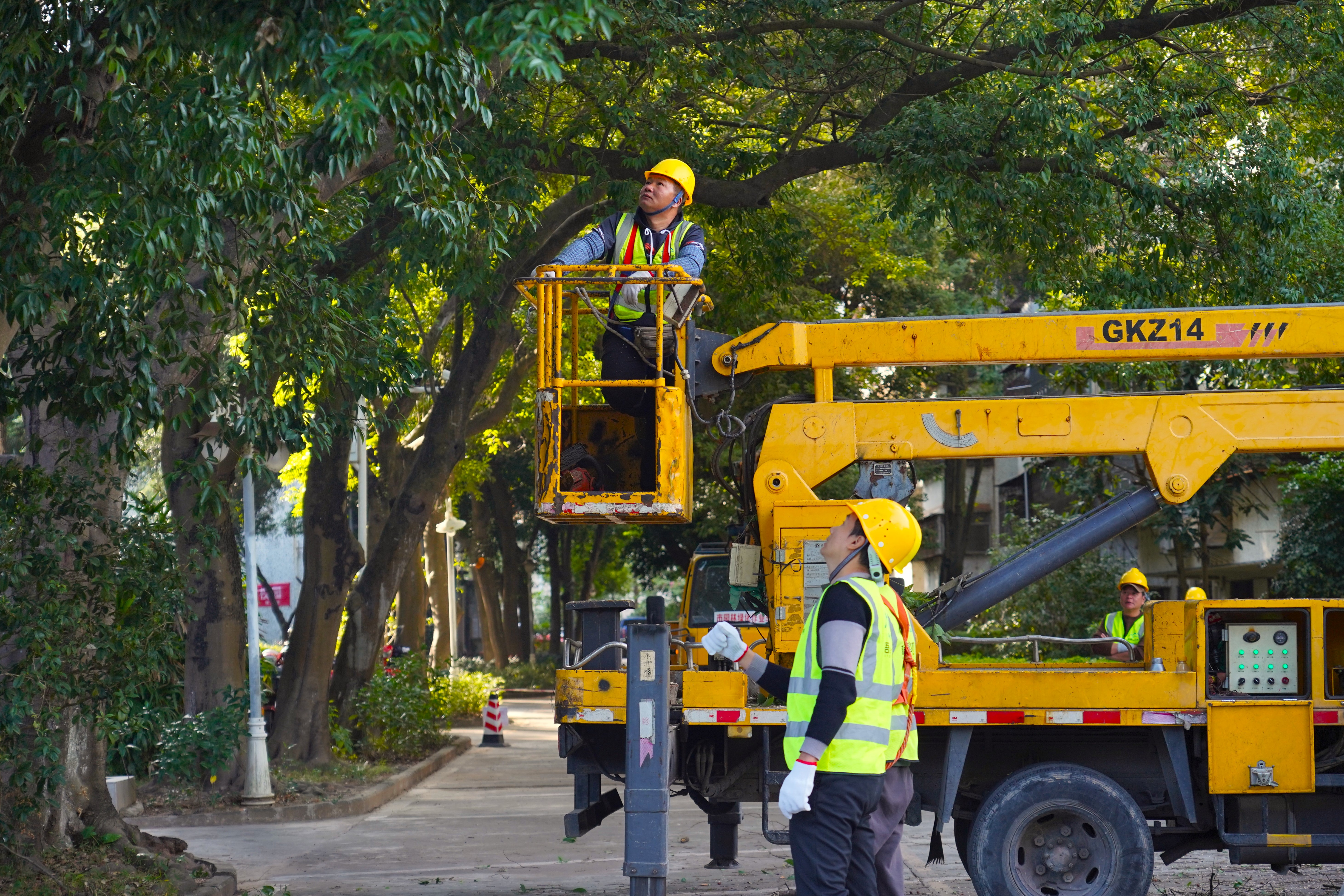 工作人員現(xiàn)場示范綠化樹木修剪作業(yè)。惠州日報記者肖泓 攝