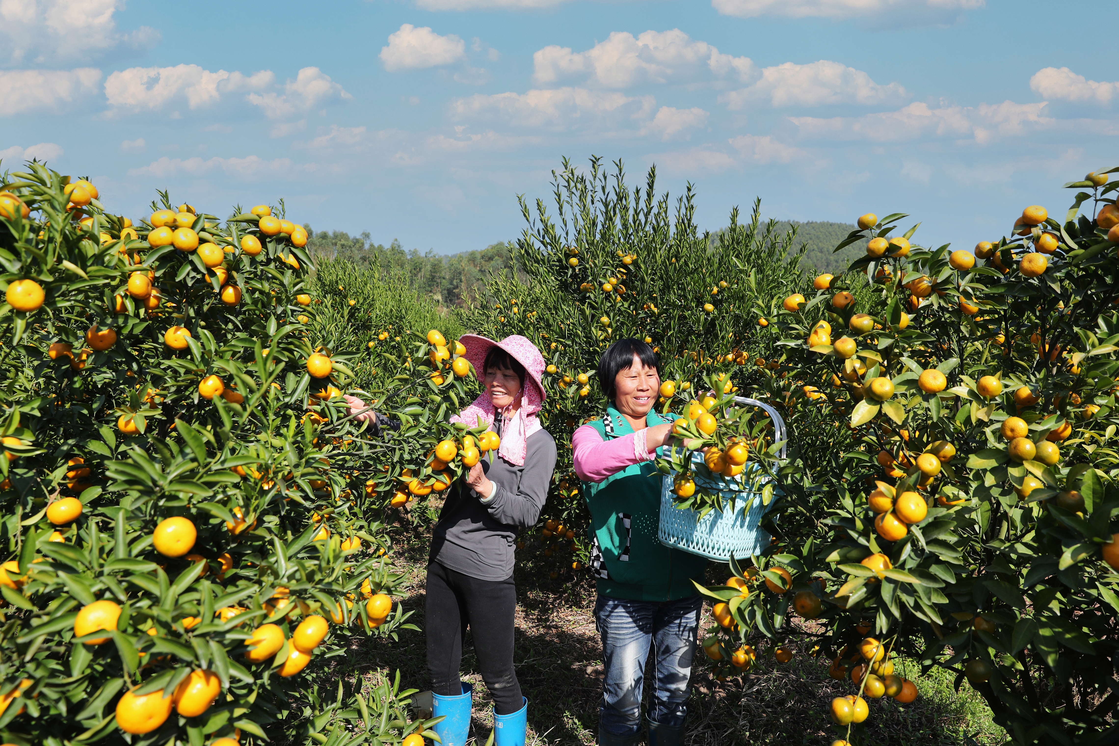 村民在摘甜橘。