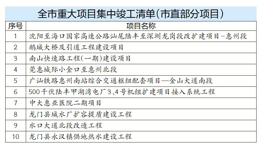 “我市始終堅持大抓項目、抓大項目,主要領(lǐng)導(dǎo)帶頭親自抓,充分發(fā)揮‘1+6+1’重大項目調(diào)度協(xié)調(diào)機(jī)制,各級各部門主動靠前、加強(qiáng)協(xié)調(diào),全流程精準(zhǔn)精細(xì)服務(wù)。”市發(fā)展改革局相關(guān)負(fù)責(zé)人介紹,今年,惠州共安排重點建設(shè)項目325宗,總投資7253億元,計劃年度投資1271億元。目前,170宗省重點項目1~11月完成投資1092億元,完成年度計劃的103%。