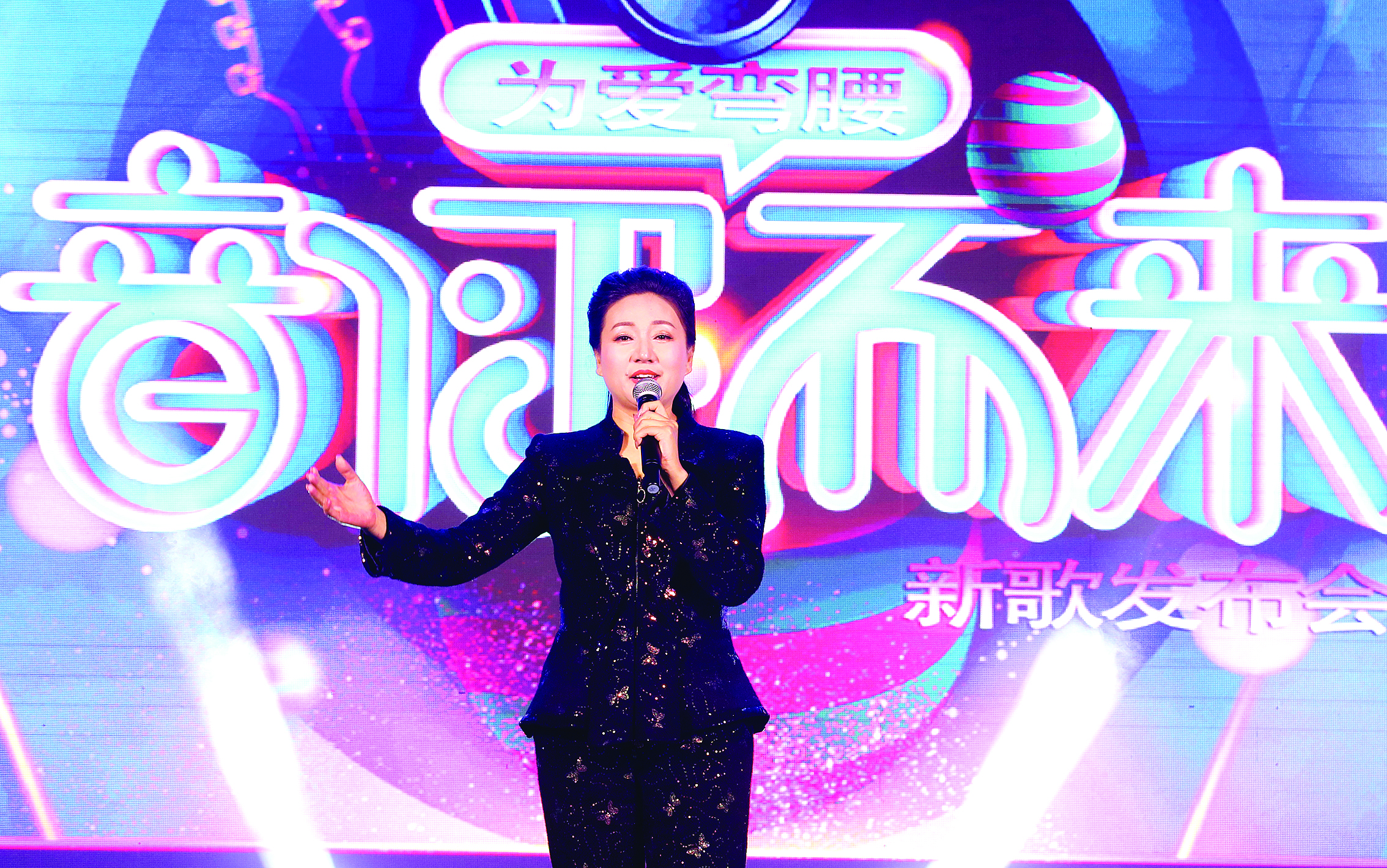 歌手現(xiàn)場演唱《為愛彎腰》。惠報全媒體記者鐘暢新 攝