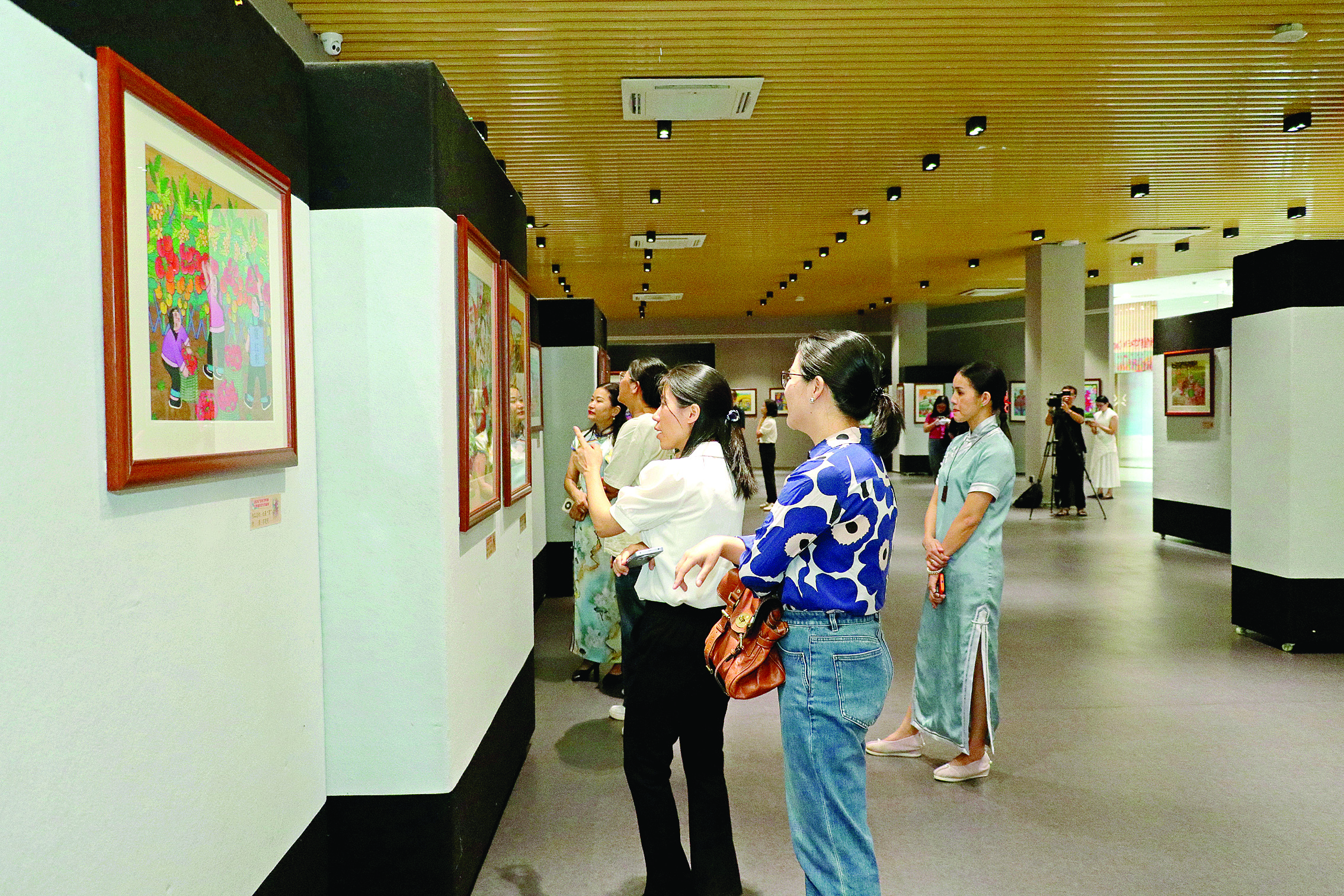 龍門縣黨員干部參觀龍門農(nóng)民畫廉潔文化作品展覽。